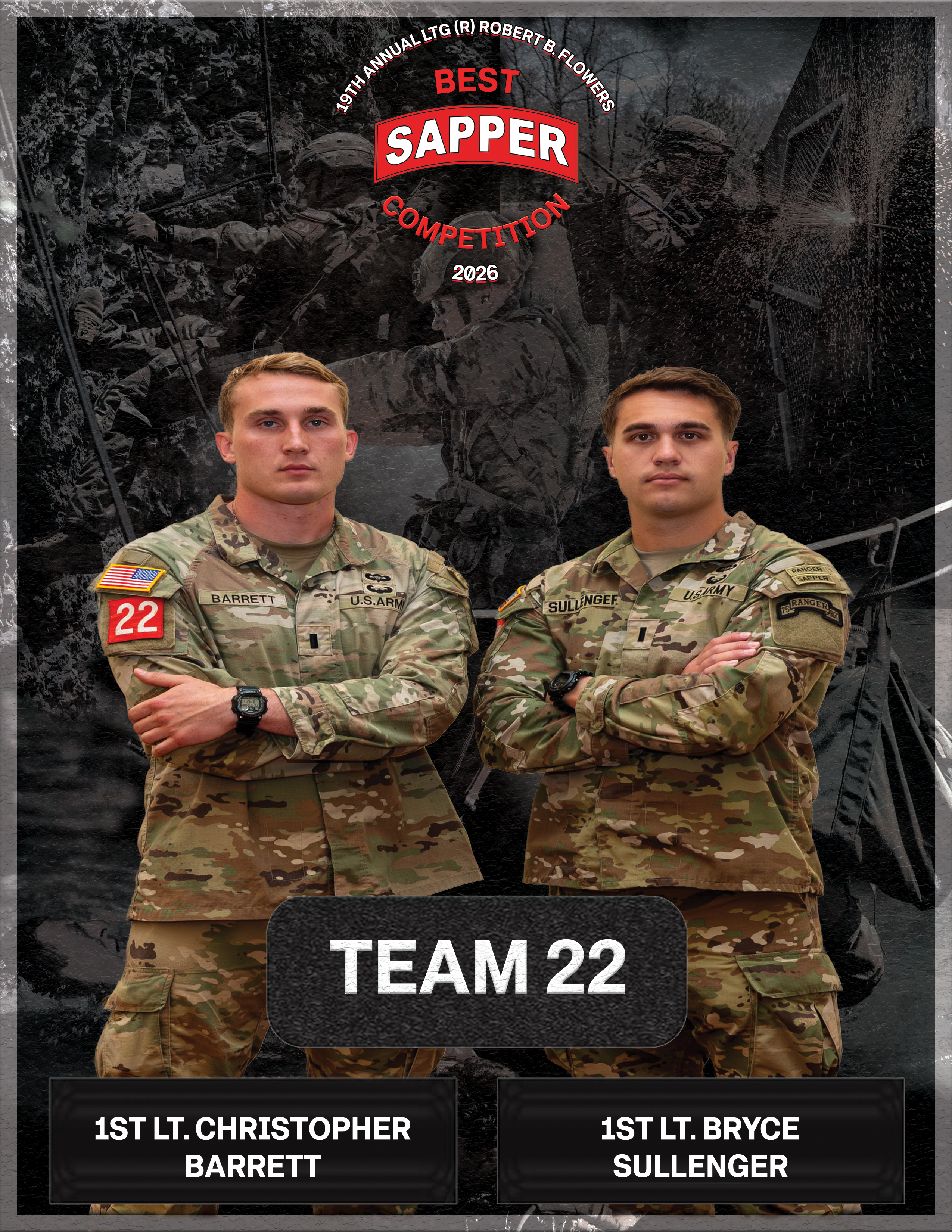 FORT LEONARD WOOD, Mo. (April 24, 2026) – The 2026 winners of the 19th Lt. Gen. Robert B. Flowers Best Sapper Competition are 1st Lts. Christopher Barrett and Bryce Sullenger, representing the 75th Ranger Regiment.